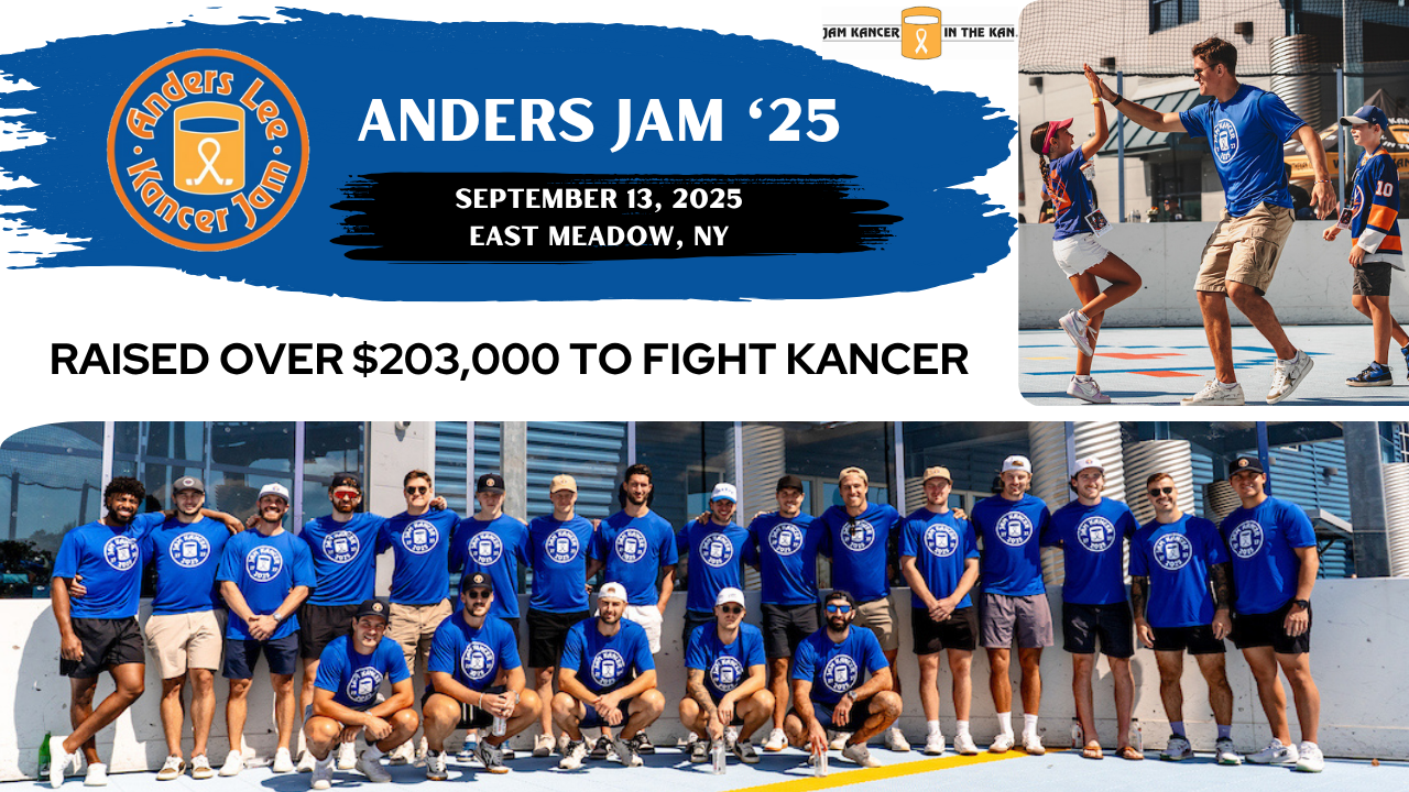 The 2025 Anders Lee Kancer Jam raised an incredible $203,000 to support families across Long Island affected by a kancer diagnosis. Hosted by Anders Lee and teammates at the Northwell Health Ice Center, the event brought the community together for an inspiring day of kan jam and giving back.